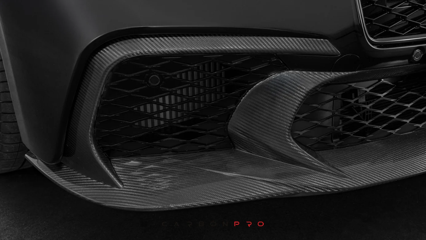 The carbon fiber BRABUS front fascia reimagines the face of the Bentley Continental GT Speed and GTC Speed. Beyond its characteristic BRABUS look, the dynamic design optimizes airflow to the radiators and front brakes. Further unmistakable accents include the exposed-carbon lower section featuring an integrated front spoiler and dynamically styled air intakes in the center and sides. Aerodynamic performance is improved as well, reducing front-axle lift for increased stability at high speeds. Available in either a high-gloss or matte finish.